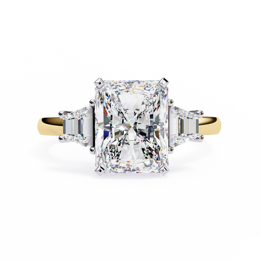 Clementine - 3.6ct Radiant-Cut Solitaire Engagement Ring with Three-Stone Design