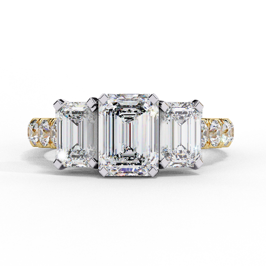 Luciana - 3.71ct Emerald-Cut Three-Stone Engagement Ring with Studded Band