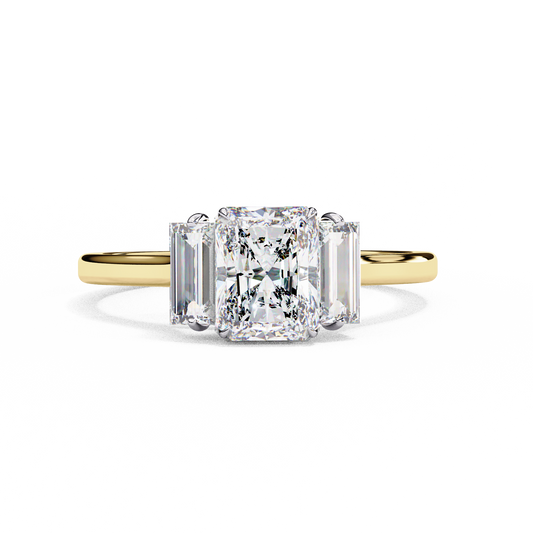 Alessia - 3ct Radiant-Cut Solitaire Engagement Ring with Three-Stone Design