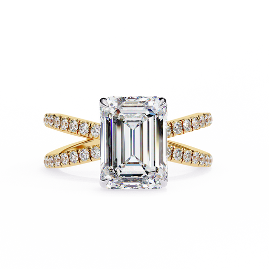 Luciana - 3.71ct Emerald-Cut Three-Stone Engagement Ring with Studded Band