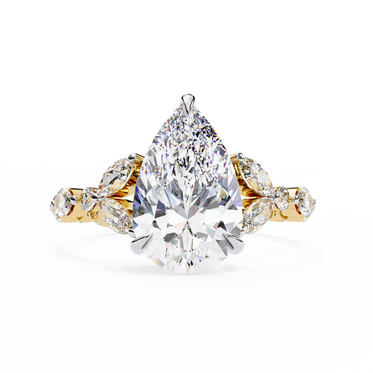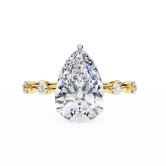 Mirabel - 3.0ct Pear-Cut Solitaire Engagement Ring with Studded Band