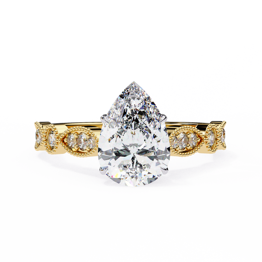 Evelina - 1ct Pear-Cut Solitaire Engagement Ring with Vintage-Inspired Design