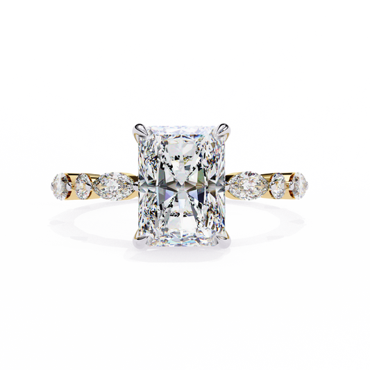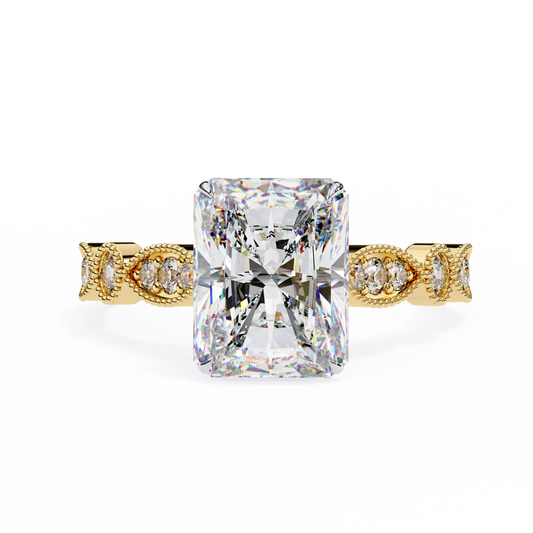 Flora - 3ct Radiant-Cut Solitaire Engagement Ring with Studded Band
