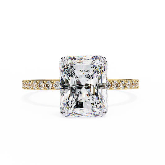 Amelia - 3ct Radiant-Cut Solitaire Engagement Ring with Hidden Halo and Studded Band