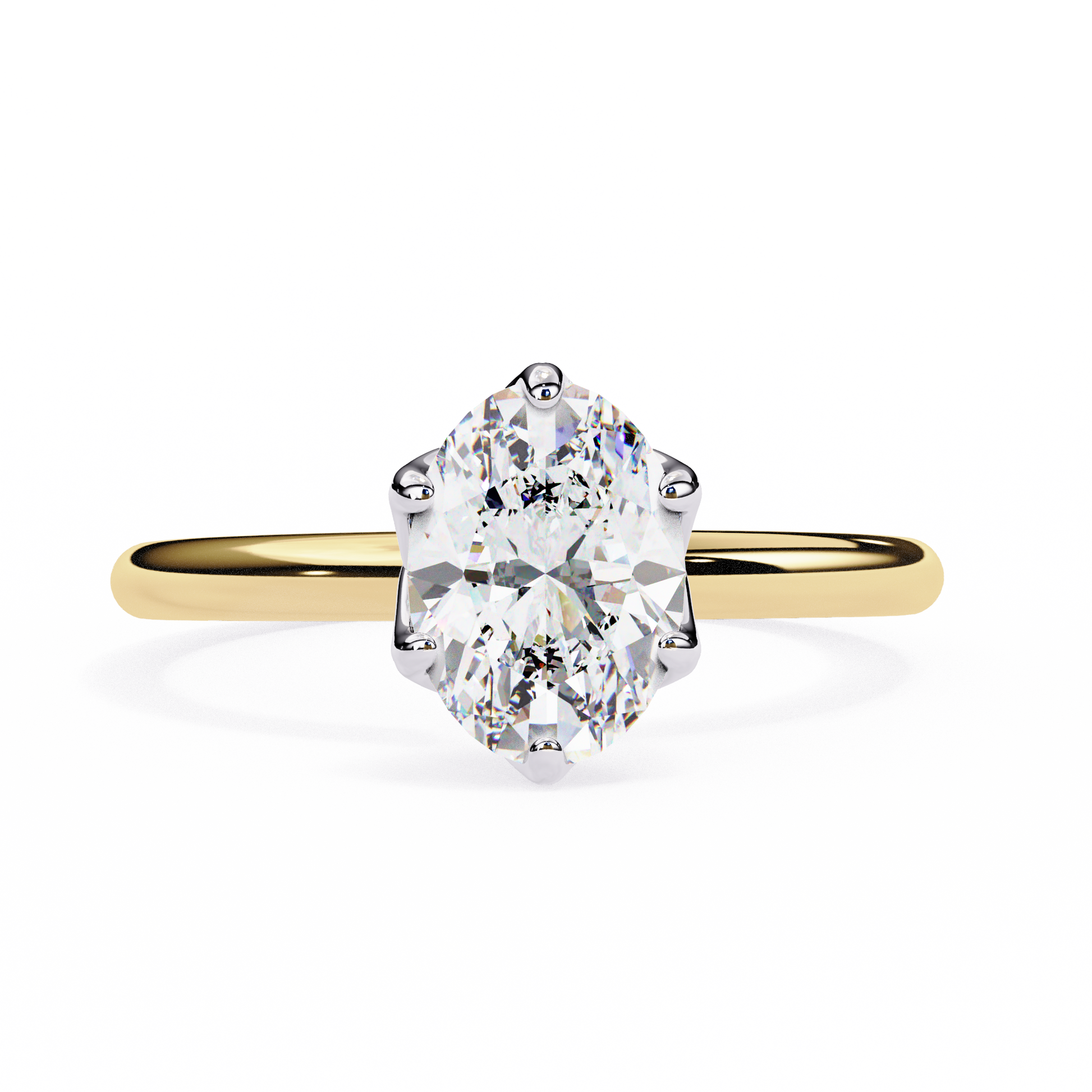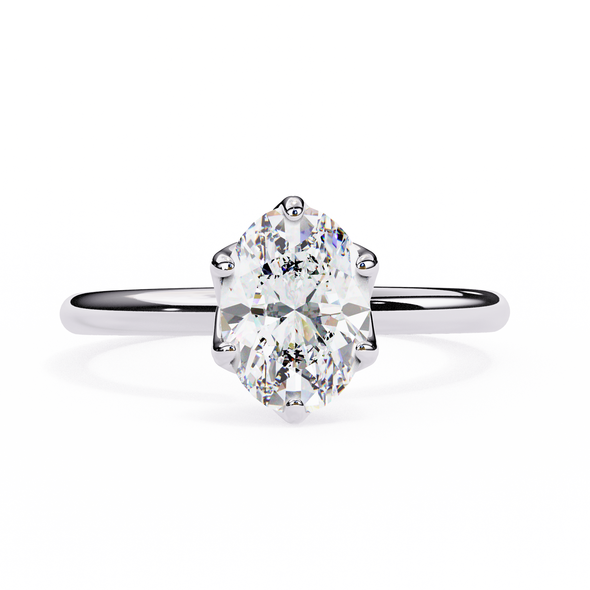 The diamond is securely set in a classic 6-prong setting, offering a sleek and sophisticated look while ensuring maximum security for the center stone. The six prongs provide a refined, elegant touch, allowing the oval center stone to stand out beautifully. This design is perfect for those who appreciate simplicity with an added touch of refinement.